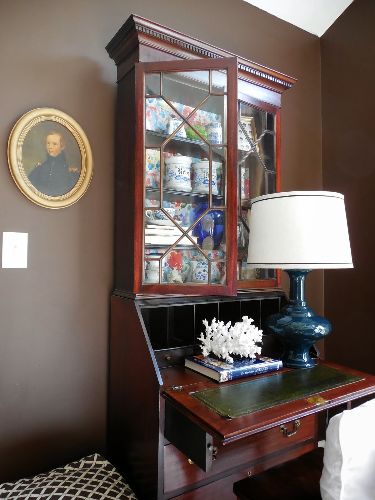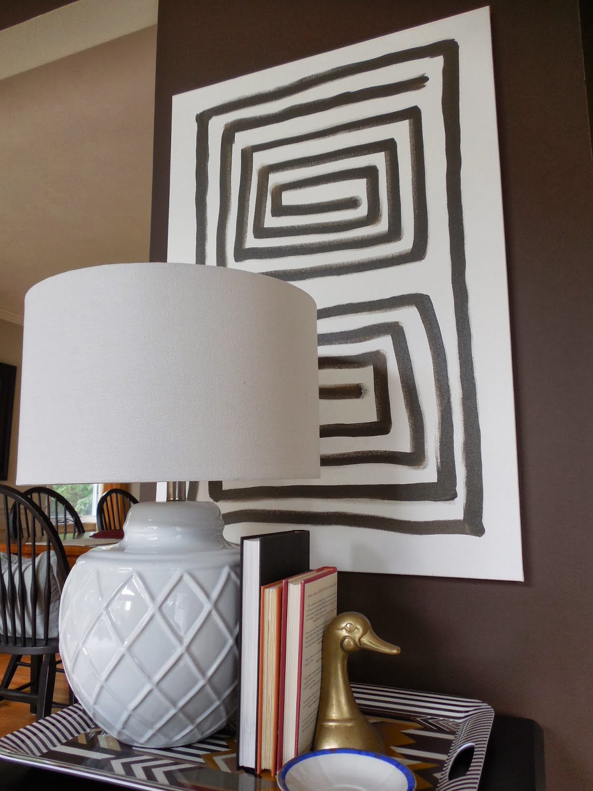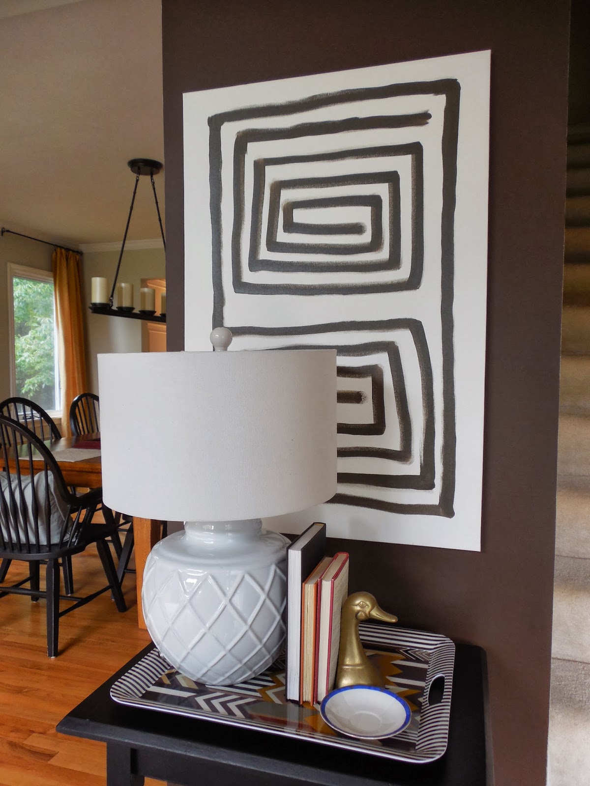 Also in this space, I balanced the traditional secretary with a modern art piece, created by myself! I just took a plain canvas board and some leftover paint to add some modern art to the room! {And as a side note, if I can create art, anyone can!} 🙂