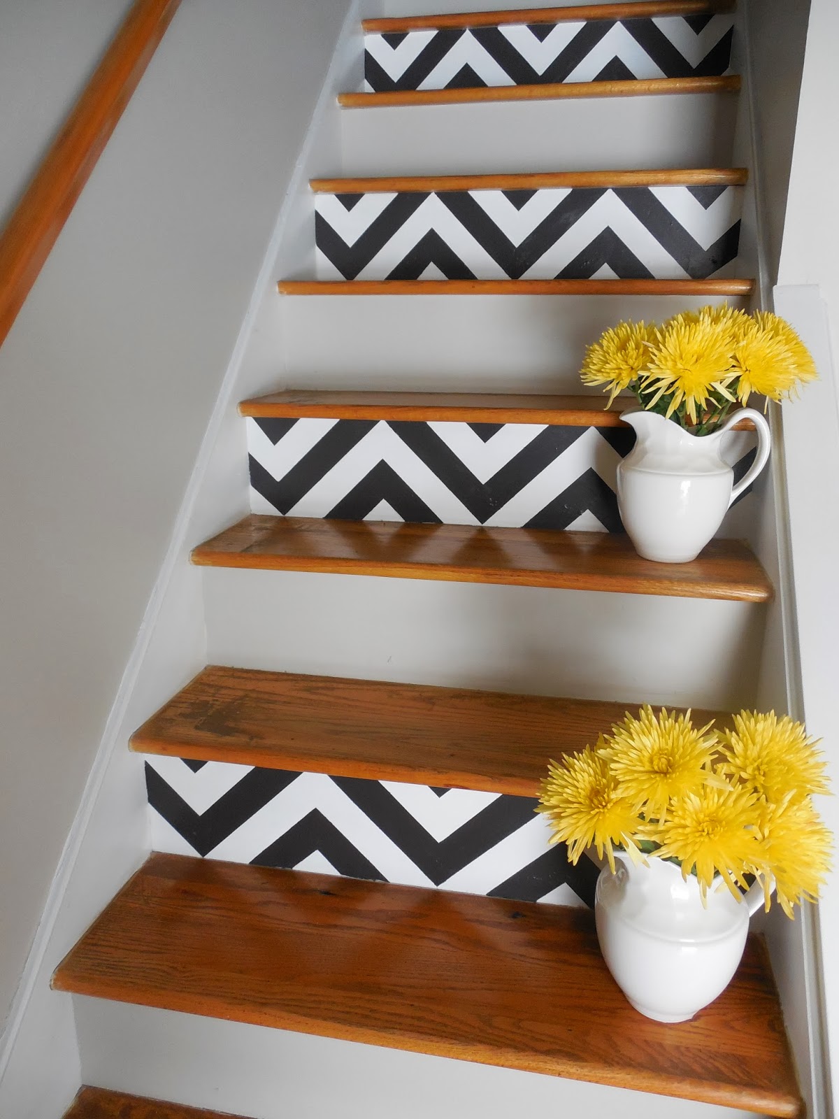 This hallway still takes my breath away! They are my mom’s stairs and she decided to make her foyer more fun and interesting by adding a chevron pattern to every other stair riser. To see how she tackled this project, visit this site HERE.